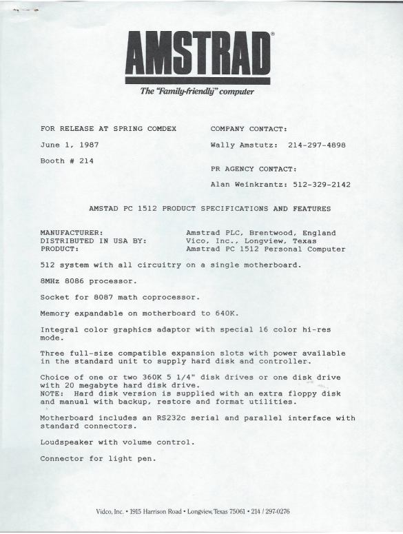 PC1512 Info leaflet (June 1987)