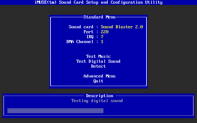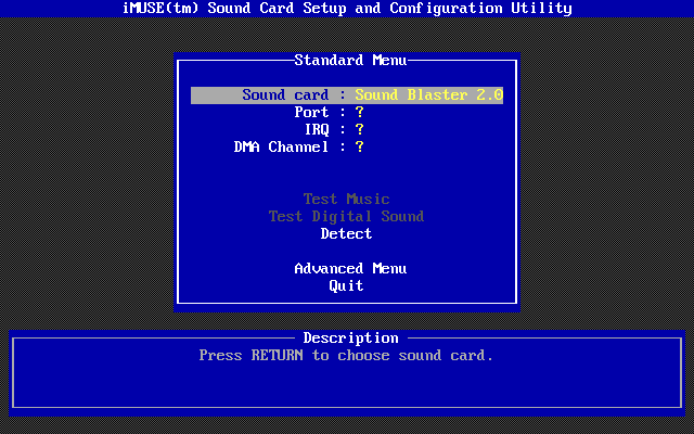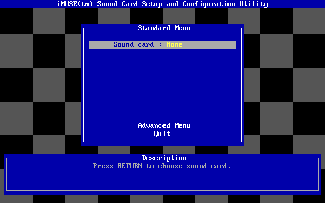 Once the installation has been completed, INSTALL will run IMUSE.EXE to configure your sound card(s):