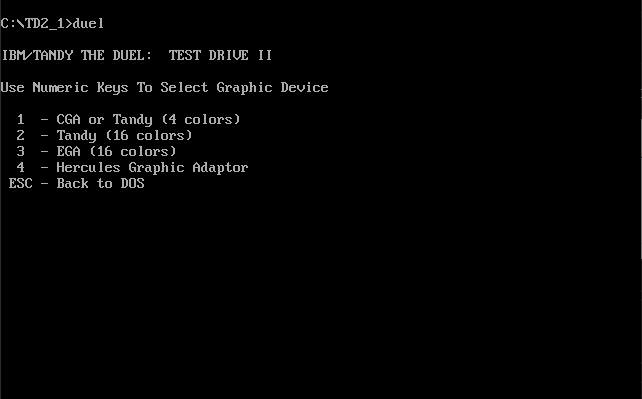 Then run DUEL.EXE and you will be prompted to select your graphics card: