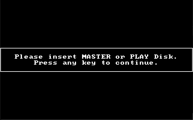 If you don't follow the instructions, running DUEL will not find the correct MASTER or PLAY disk file and show this: