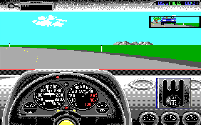 Test Drive II's enhancements are all very welcome, and overall make the game a more enjoyable experience that will cause you to want to spend more time playing. The police are not only on the roads, but can also be seen trying to flag you down by the side of the road. The addition of 12 skillsets with the first four offering you an automatic gearbox make the game more accessible to beginners.