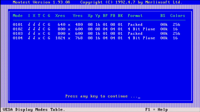 - On 512 KB video RAM boards, resolutions up to 1024 x 768 in 16 colours interlaced or non-interlaced (plus 640 x 400, 640 x 480, 800 x 600, all in 256 colours)