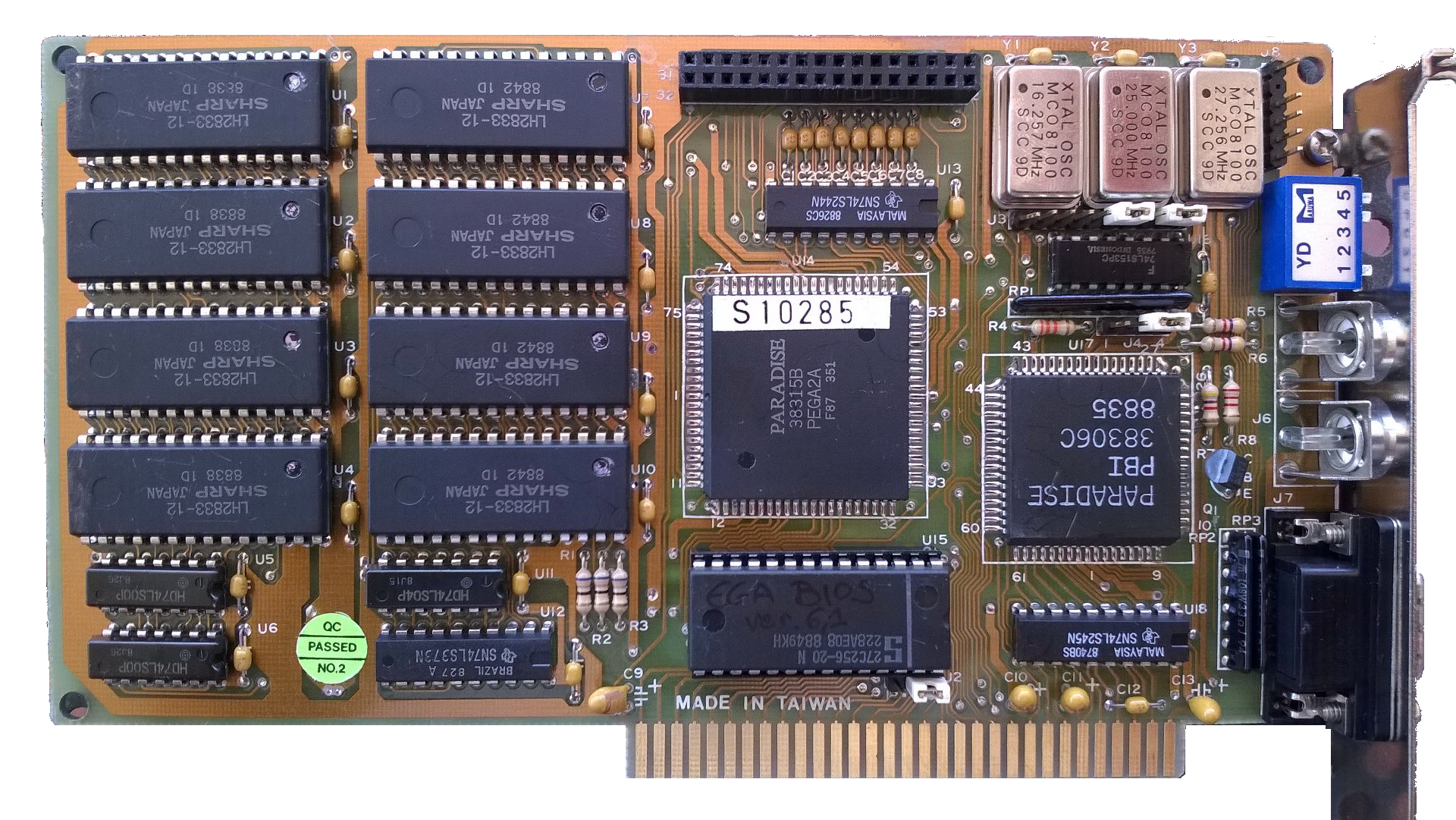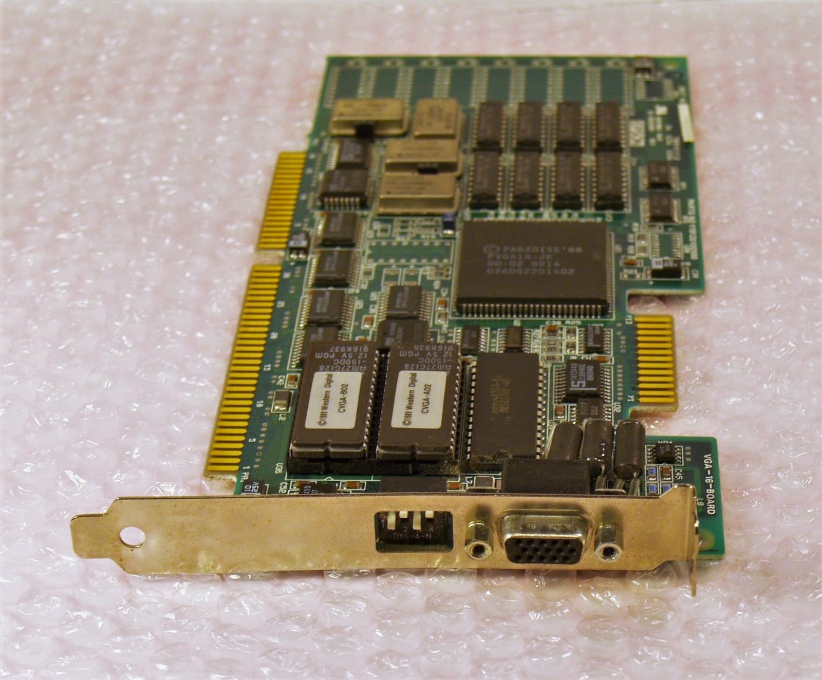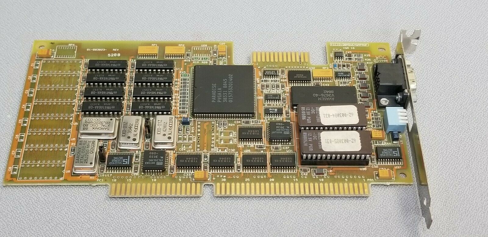 For my findings on the crystal oscillators on PVGA1A cards, see the section at the bottom of this page called Paradise/WD Crystals.
