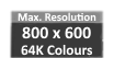 - On 256 KB video RAM boards, resolutions up to 1024 x 768 in 2/4 colours, or 800 x 600 in 16 colours