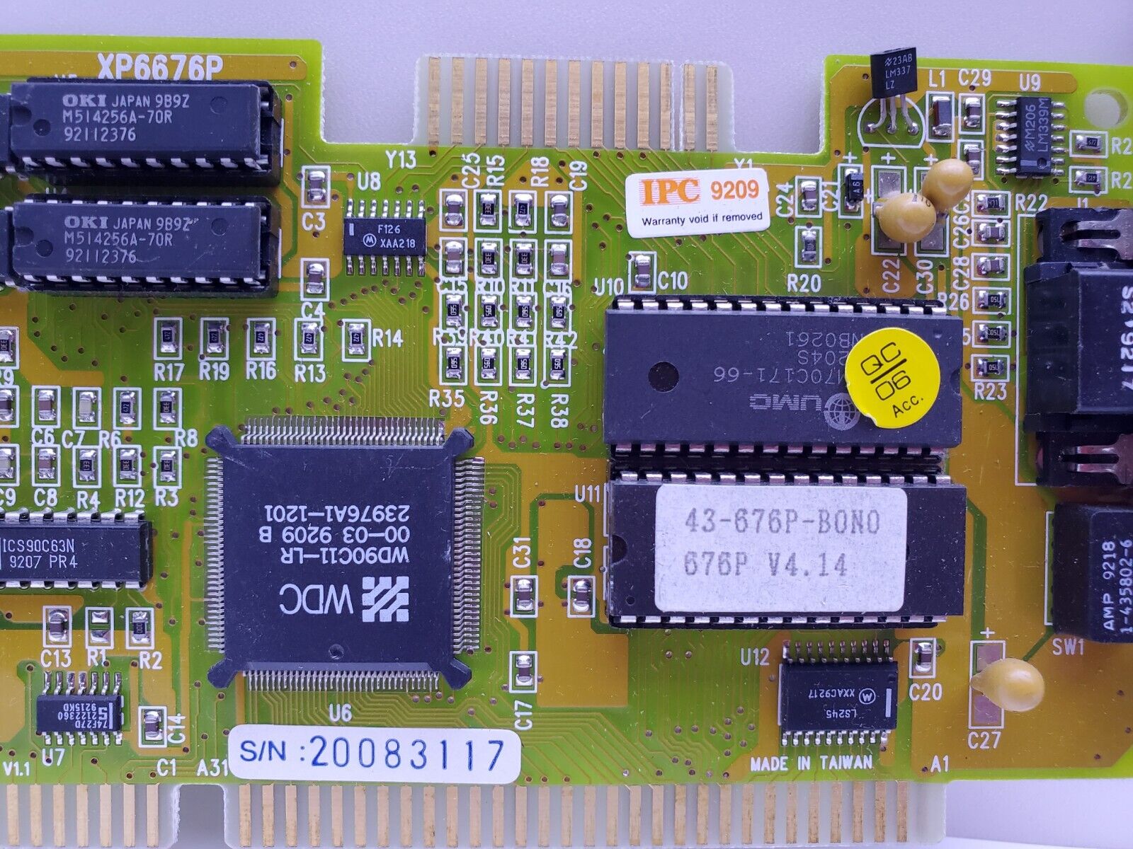 An "Enhanced VGA controller" from Western Digital - the WD90C11-LR chipset. The WD90C11 used a 1.25 micron process, and WD90C11A used the later 0.9 micron process for manufacture. Highlights of the chipset include: