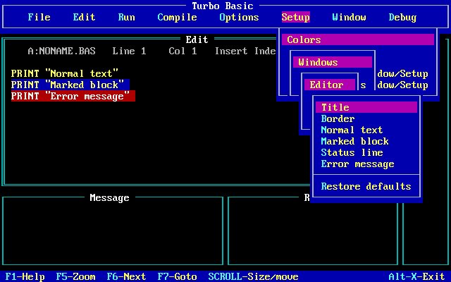 The first version was of course v1.0. For anyone who had already written BASIC programs in GWBASIC or QBASIC, you could load its .BAS files into Turbo BASIC and it would be around 90% compatible with the exception of just a few commands. You would need to save the file in GWBASIC using this syntax to ensure it was in ASCII mode: SAVE option "myprog",A