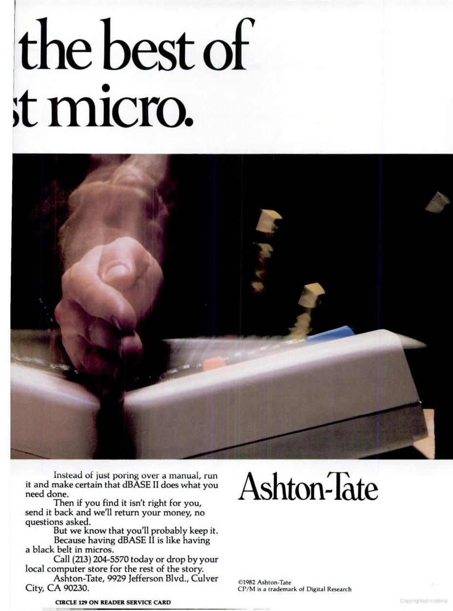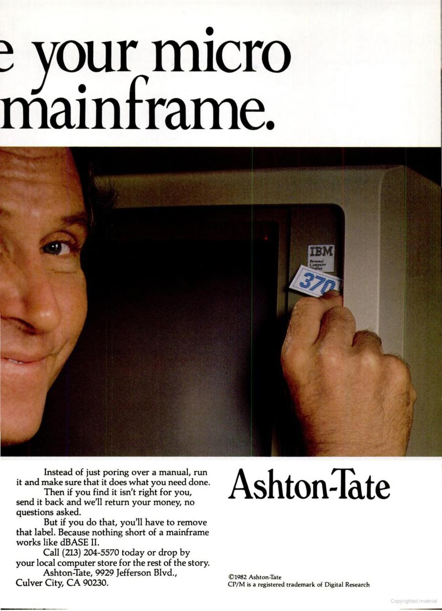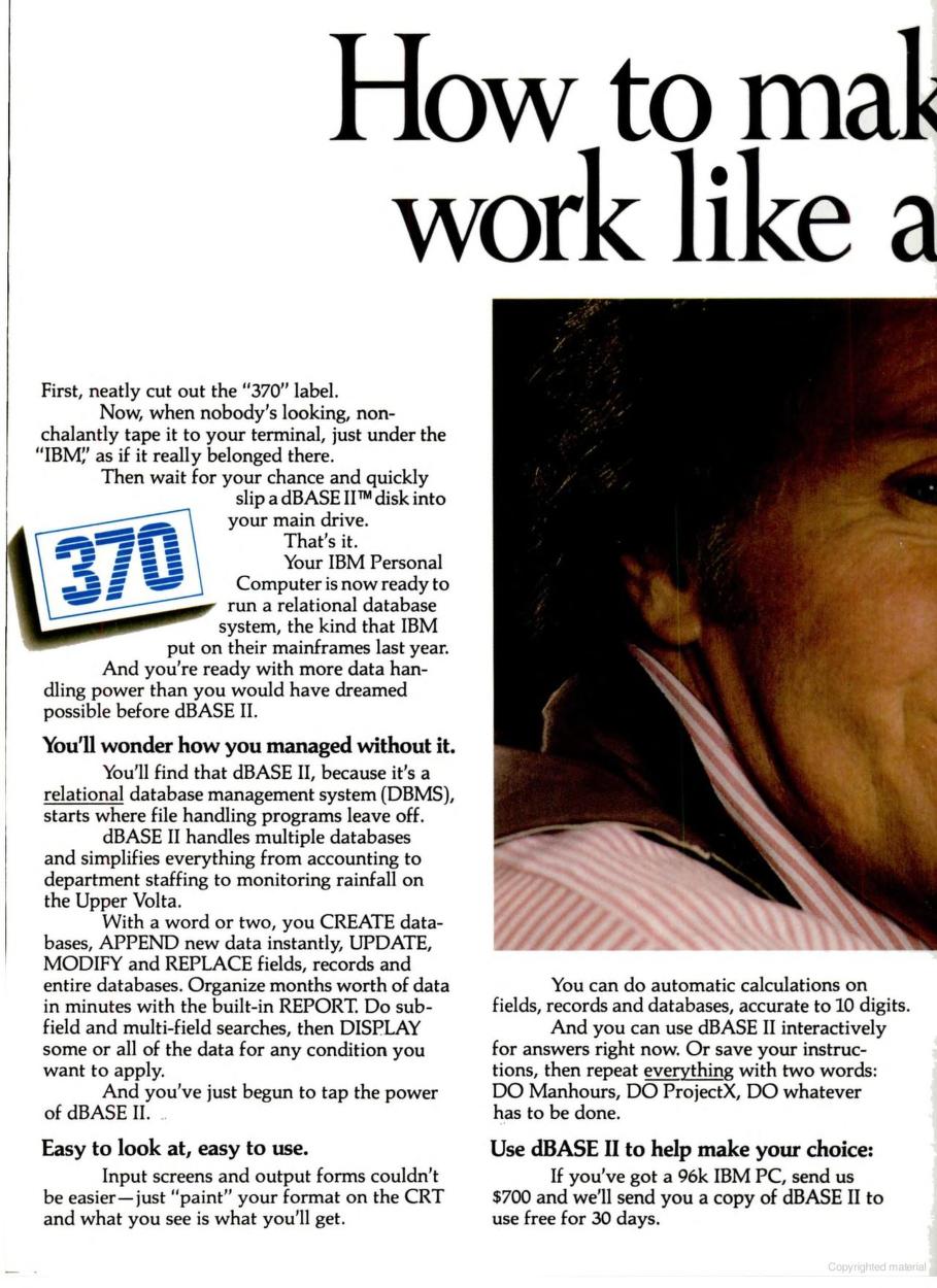 Two advertisments of dBASE II, August 1982 (left) and January 1983 (right)