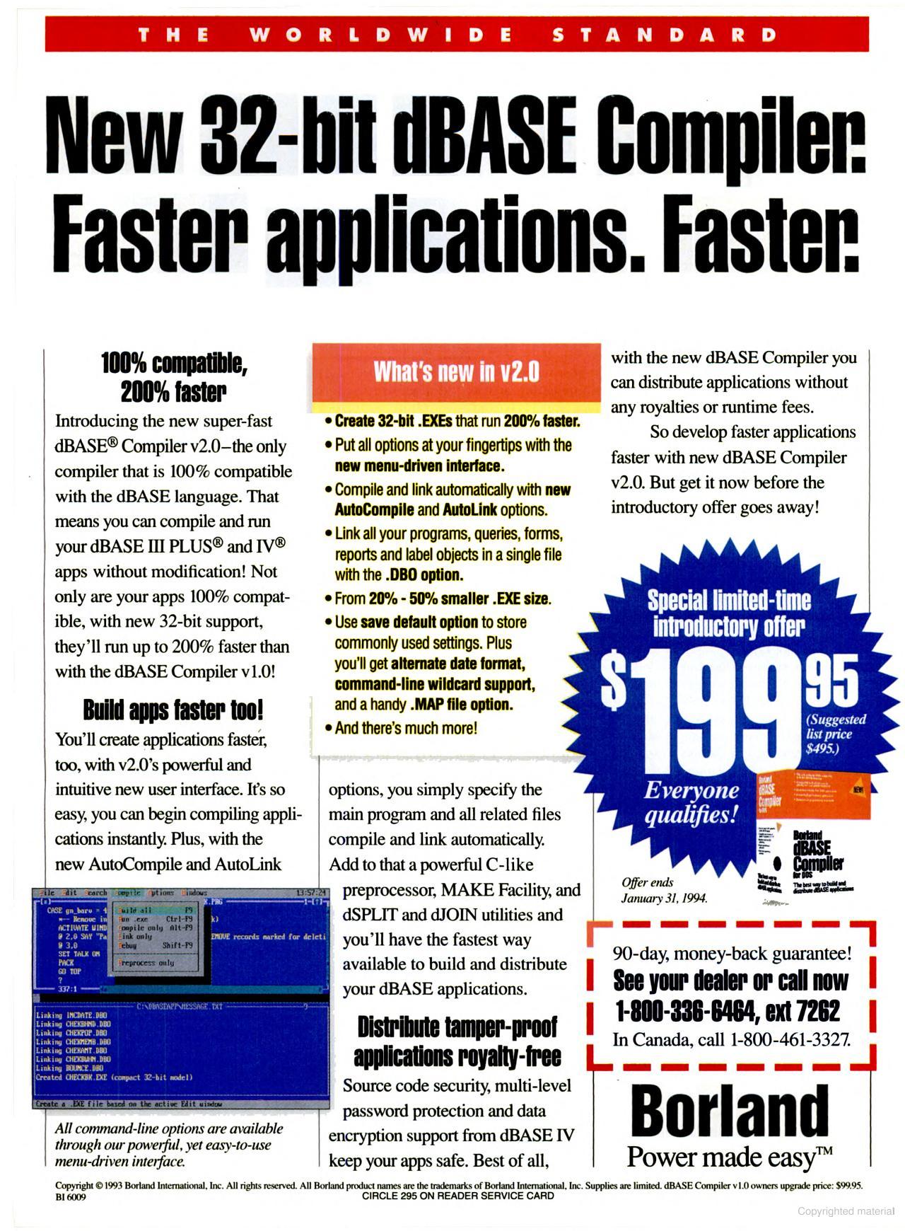 An advertisement of Borland's dBase Compiler, November 1993