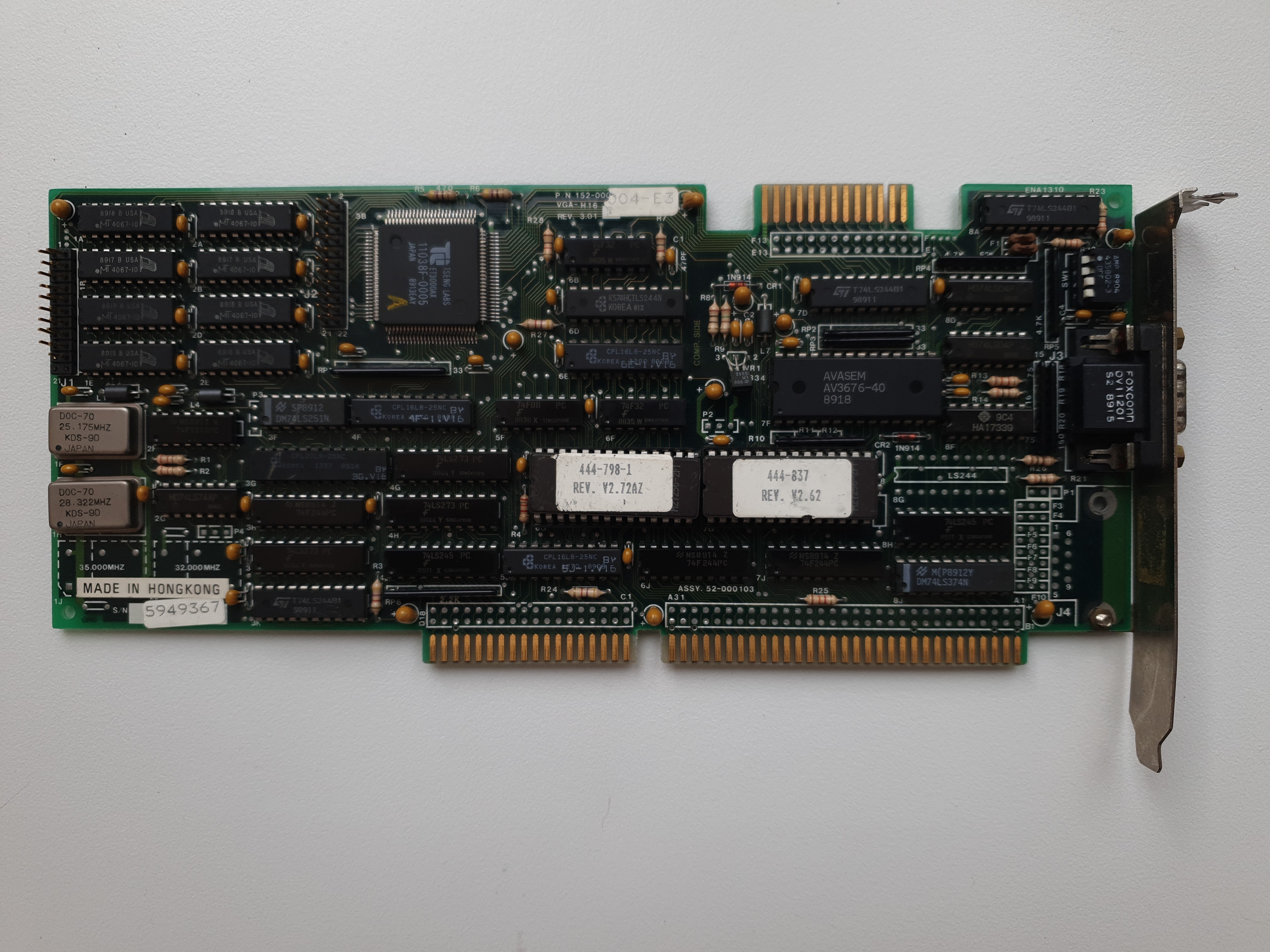 AVGA 512 KB 16-bit ISA card, ca. 1988