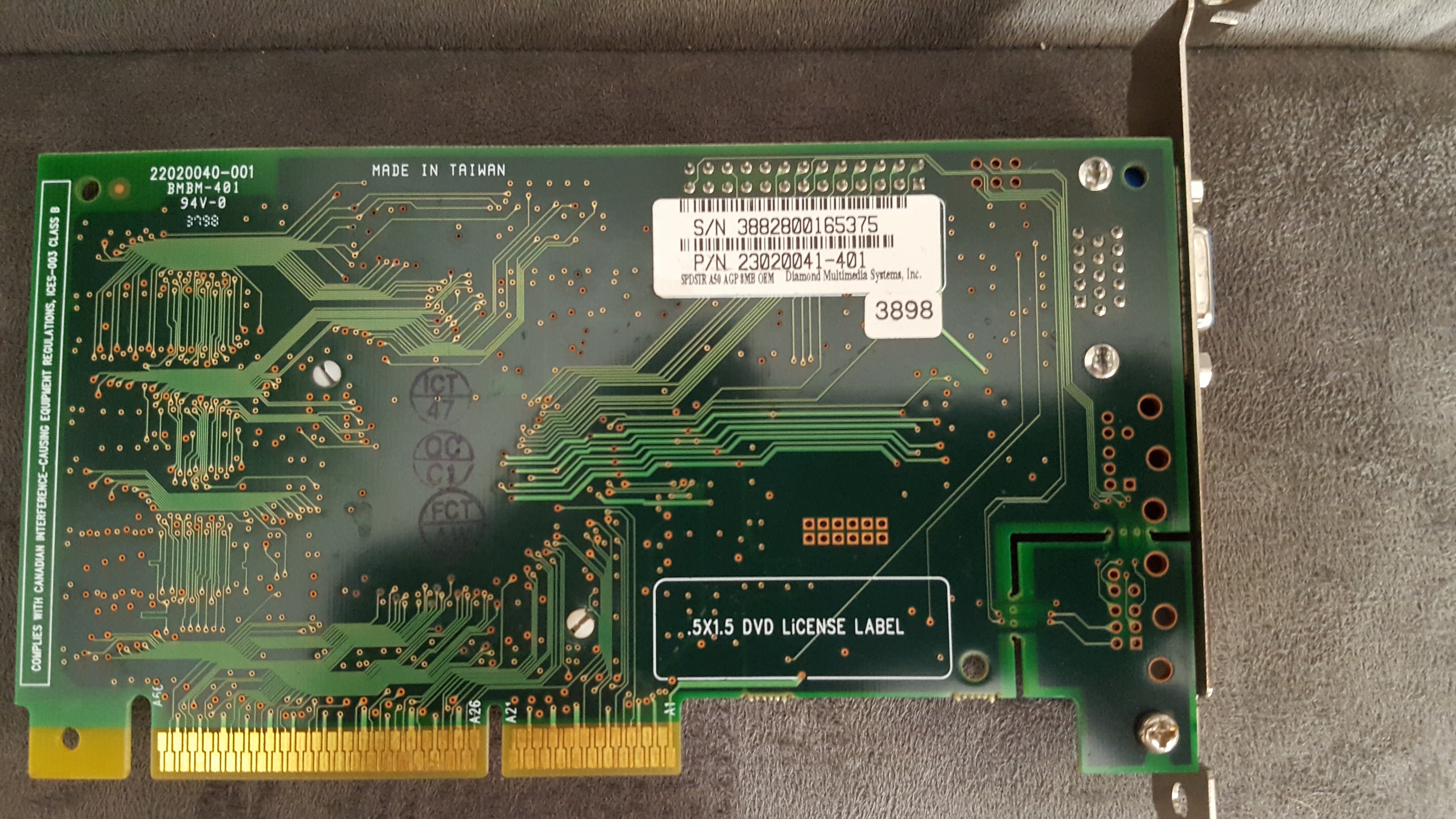 Bought for $3 in a bundle in December 2022 for $55.80 USD, including a Trident 3DImage 9750 ($5), a C&T-based ISA SVGA card ($7), a Tekram CaptureTV M200 card ($5), and a Sound Blaster ViBRA 128 (CT4810) ($3.50).