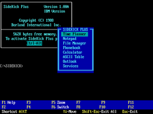Borland's Sidekick, launched in 1984, was an early PIM (Personal Information Manager). It included a personal calendar, text editor (with WordStar-like command interface), calculator, ASCII chart, address book, and phone dialer. With this tool, you could be in your favourite word processor, and call up Sidekick to find out someone's address.