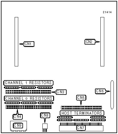 Note: CN6 or CN7 connects the Windjammer controller to the host system. CN6 allows the Windjammer to interface to host systems with differential SCSI ports via an optional differential converter board.