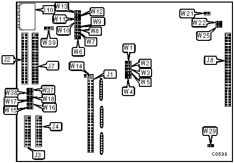 Note: Drive select 1 & 2 refer to the drive select jumper setting on the drive itself and should be set to 1 & 2 respectively. When W39/pins 1 & 2 closed drive select 4 must not be used. Jumpers W15, W16, W17, W18, W37, W38, W39 refer to flexible disk drives and apply only to models 7200 & 7400. |