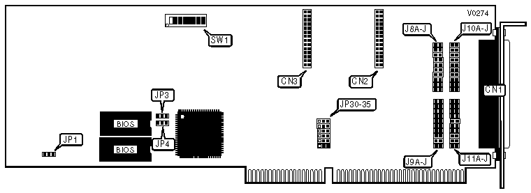 Note: Pins designated should be in the closed position. For AT & T, UNIX and INTERACTIVE, the available interrupts are 3, 4, 5, 7, 10, 11, 12, 14, and 15. For SunOS the available Interrupts are 3, 5, 10, and 11. |