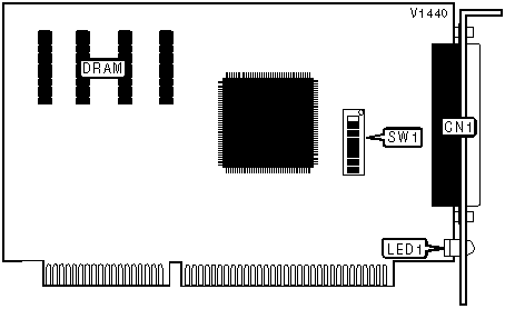 Note: A total of 81 base address settings are available. The switches are a binary representation of the decimal memory addresses. SW1/7 is the Most Significant Bit and switch SW1/1 is the Least Significant Bit. The switches have the following decimal values: SW1/7=512, SW1/6=256, SW1/5=128, SW1/4=64, SW1/3=32, SW1/2=16, SW1/1=8. Turn off the switches and add the values of the switches that are off to obtain the correct memory address. (Off=1, On=0) |