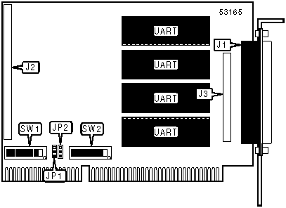 Note: A total of 512 base address settings are available. The switches are a binary representation of the decimal memory addresses. SW1/8 is the Most Significant Bit and switch SW1/1 is the Least Significant Bit. The switches have the following decimal values: SW1/8=4096, SW1/7=2048, SW1/6=1024, SW1/5=512, SW1/4=256, SW1/3=128, SW1/2=64, SW1/1=32. Turn off the switches and add the values of the switches that are off to obtain the correct memory address. (Off=1, On=0)SW1/1 must be off if the daughterboard is installed. |
