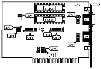 Note: A total of 255 memory base address settings are available. The switches are a binary representation of the decimal addresses. Switch 8 is the Least Significant Bit and switch 1 is the Most Significant Bit. The switches have the following decimal values: switch 8=1, 7=2, 6=4, 5=8, 4=16, 3=32, 2=64, 1=128. Turn off the switches and add the off switches to obtain the correct memory base address. (On=0, Off=1) |