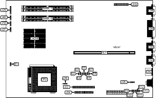 Floppy drive interface, IDE interface, parallel port, PS/2 mouse port, serial ports (2), 8514 video pass through connector, VGA port, riser slot |