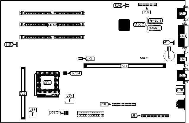 Note: If a VGA processor is enabled, SW1/2 has no function. If the VGA controller is disabled, and a CGA or MDA controller is installed, set the switch to the above setting. |