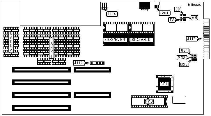 Note:The settings G and V are silk-screened on the board. The actual pin connections are unknown. 1MB and 1.5MB configurations require the system memory card to be installed. |