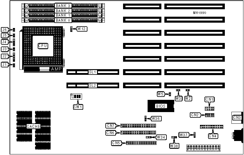 Note: The location of the factory configured jumpers is unidentified.
