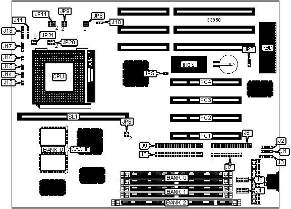 Note: Board accepts EDO memory. Board also accepts x 32 SIMMs. Banks 0 & 1 are interchangeable |