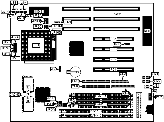 Note: Board accepts EDO & SDRAM memory. Banks 0 & 1, 2 & 3 are interchangeable. |