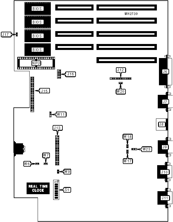 bus mouse port, floppy drive interface, game port, IDE interface, SCSI connector, parallel port, PS/2 mouse port, serial port, VGA port |
