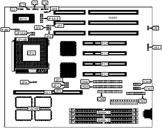 Note: Board accepts EDO memory. Banks are interchangeable. |