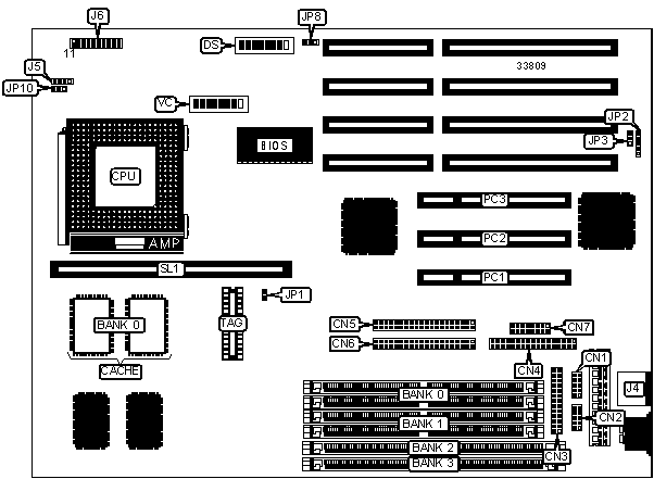 Note: Banks 2 & 3 are interchangeable. If using this configuration, SIMM sockets must be empty. |