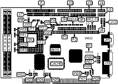 Floppy drive interface, green PC connector, IDE interface, SCSI interface, parallel port, PS/2 mouse interface, serial ports (2), VGA feature connector, VGA port, flat panel connector, PC/104 connectors (2) |