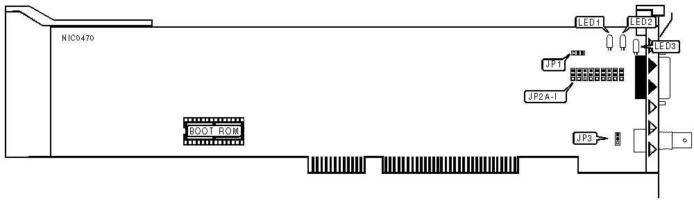 Note:If the card is on either end of a linear bus network segment, the onboard terminator may be used instead of an external terminator |