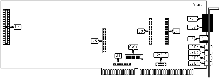 Note: A total of 128 base address settings are available. The switches are a binary representation of the decimal memory addresses. SW1/8 is the Most Significant Bit and switch SW1/2 is the Least Significant Bit. The switches have the following decimal values: SW1/8=512, SW1/7=256, SW1/6=128, SW1/5=64, SW1/4=32, SW1/3=16, SW1/2=8. Turn off the switches and add the values of the switches that are off to obtain the correct memory address. (Off=1, On=0) |