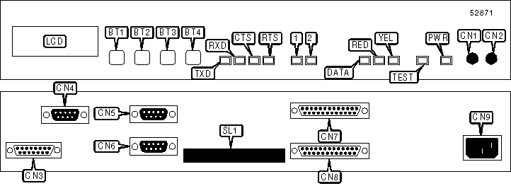 TXD, RXD, CTS, and RTS LEDs indicate status of data port 1 |