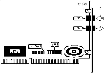 Note: A total of 127 memory base I/O address settings are available. The switches are a binary representation of the hexadecimal addresses. Switch SW1/1 is the Least Significant Bit and switch SW1/7 is the Most Significant Bit. The switches have the following decimal values: switch SW1/1=8, SW1/2=16, SW1/3=32, SW1/4=64, SW1/5=128, SW1/6=256, SW1/7=512.Turn off the switches and add the values of the off switches to obtain the correct base I/O address. (on=0, off=1) |