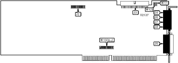 Note: A total of 1023 base address settings are available. The jumpers are a binary representation of the decimal memory addresses. W13/A is the Most Significant Bit and jumper W13/J is the Least Significant Bit. The jumpers have the following decimal values: W13/A=512, W13/B=256, W13/C=128, W13/D=64, W13/E=32, W13/F=16, W13/G=8, W13/H=4, W13/I=2, W13/J=1. Open the jumpers and add the values of the open jumpers to obtain the correct memory address. (Open=1, Closed=0) |