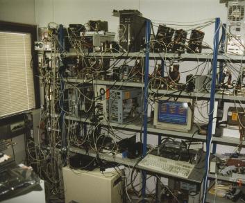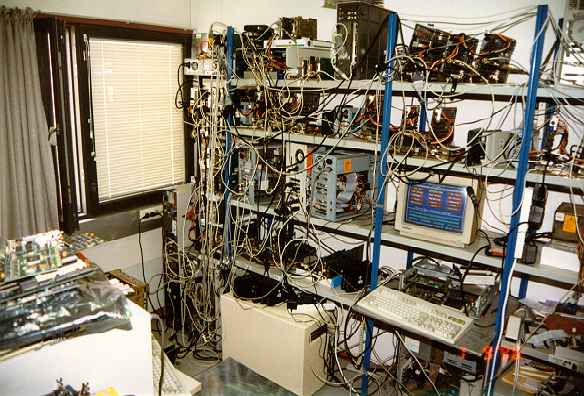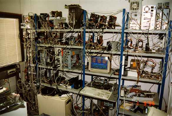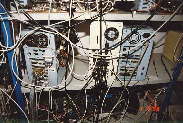 bbs-6.jpg | 2013-02-24 09:29 | 16K | Konehuone, Kalevankatu 1997 - Ensimmäiset viisi nodea valmiina (ylähyllyllä). Serverit käynnissä ja käyttäjätietokannan pakkaus meneillään. Aamulla aloitettiin ja koko päivä asennusta takana. |