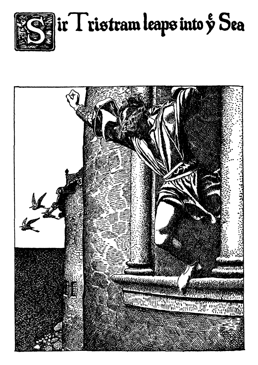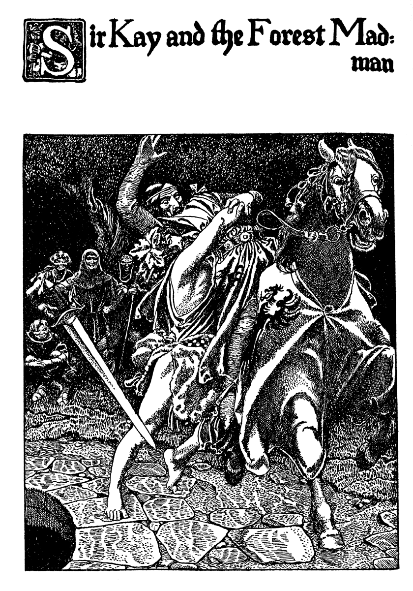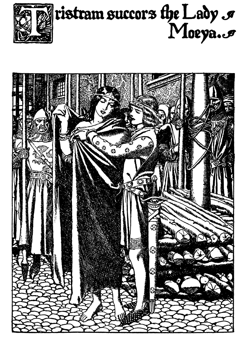 How Sir Tristram got him a Sword from Sir Kay, and how he Slew Therewith a Huge Knight in the Forest and Rescued a Lady in very Great Distress. Also how Sir Launcelot found Sir Tristram in the Forest and Brought him Thence to Tintagel again