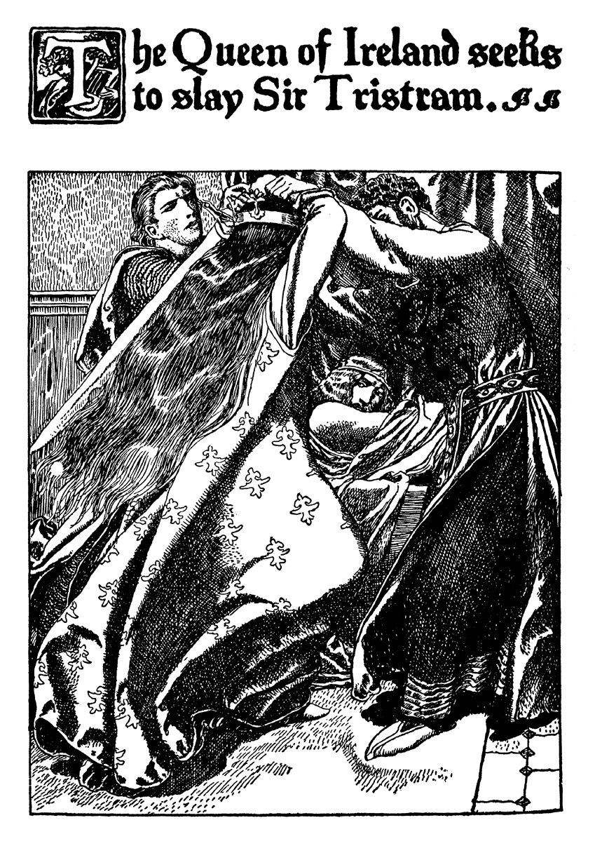 How Sir Tristram went to Ireland to be healed of his Wound by the King's Daughter of Ireland, and of how he came to love the Lady Belle Isoult. Also concerning Sir Palamydes and the Lady Belle Isoult