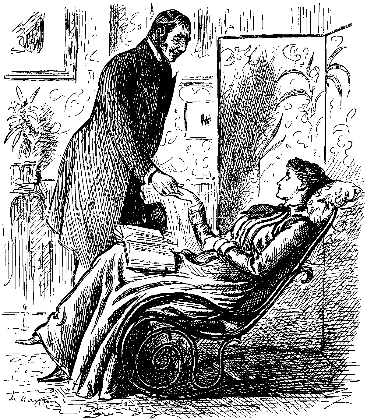 "Going to-morrow? Oh, do stay—we had looked forward to quite a week more. Can't you alter it?" i.e., "Quite safe. Know he's got to go."