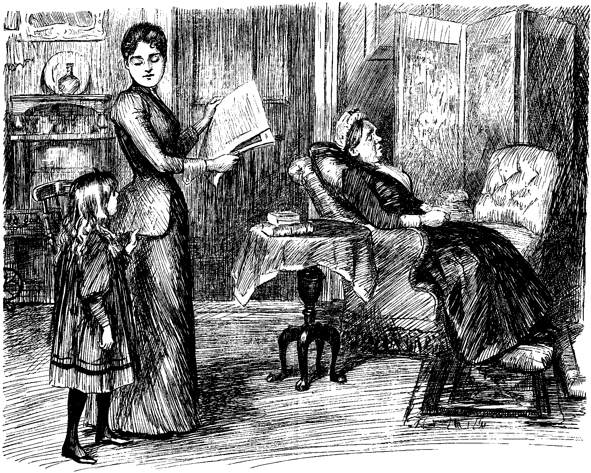 However, the evening was so remarkable that I at once sat down next day to record all that I could remember of this strange Christmas Party. Round the table were ROBERT ELSMERE, DORIAN GRAY, Sir ALAN QUATERMAIN, the MASTER of BALLANTREE, and other distinguished persons, including Princess NAPRAXINE,—a charming woman, who looked remarkably well in her white velvet with a knot of old lace at her throat and a tea-rose in her hair. Mrs. HAWKSBEE, too, looked smart in black satin, but in my opinion she was cut out by little DAISY MILLER, a sprightly young lady from America. My host (I wish I could remember his name) carried his love of celebrities so far, that even his servants were persons of considerable notoriety. His head butler, a man named MULVANEY, was an old soldier, who, with the two footmen (formerly his companions-in-arms) had been known in India by the name of "Soldiers Three."