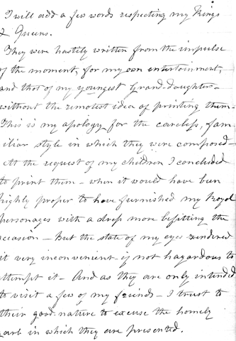 My first essay, was The Monarchs of England. I took it up for my amusement, wishing to ascertain how much of that history I could recollect without help from any other source than memory.