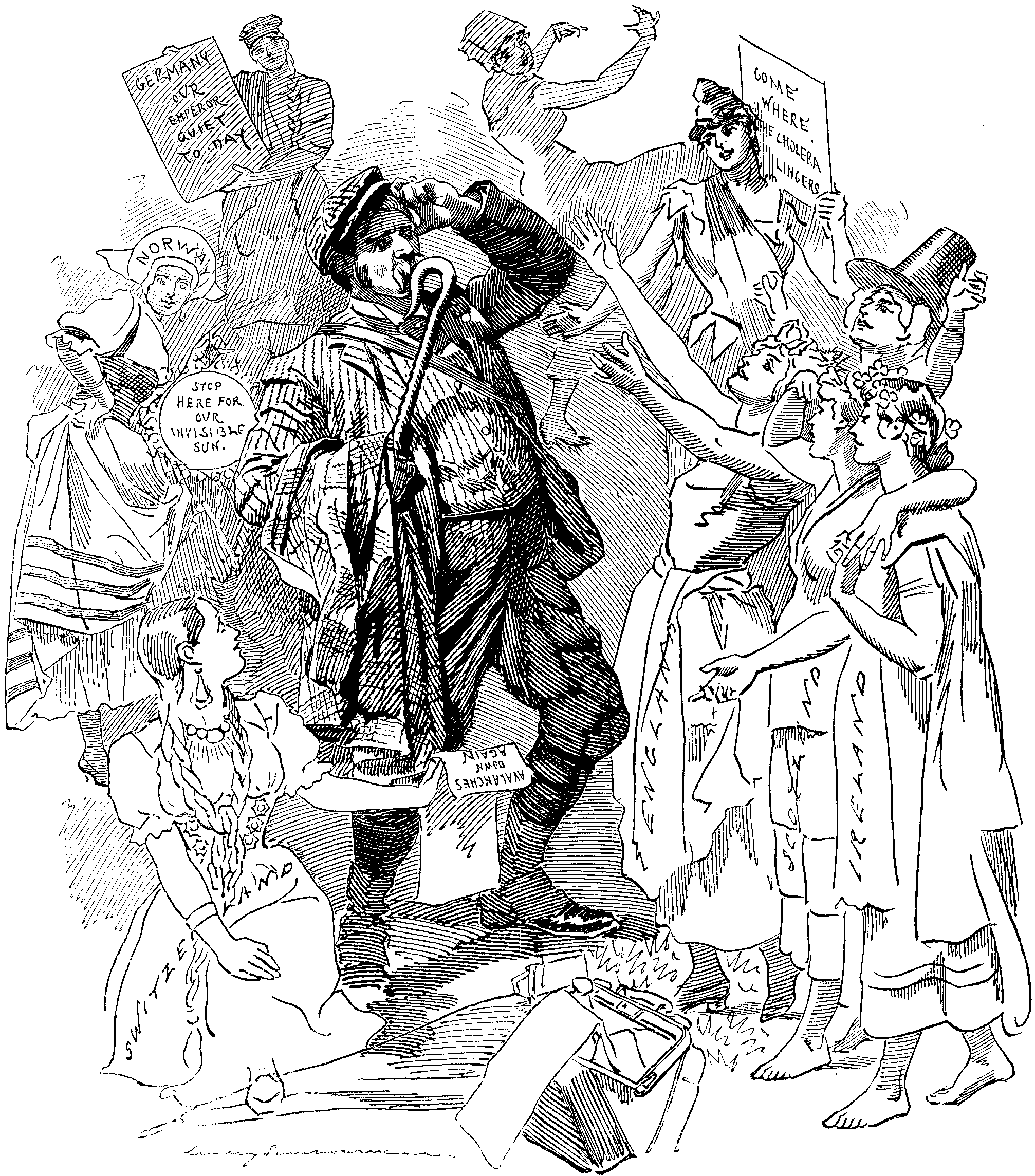 THE BEWILDERED TOURIST AND THE RIVAL SIRENS.