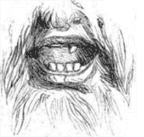 «L'autre particularité de ces deux êtres est une anomalie remarquable dans le nombre des dents. Andrian a quatre incisives à la mâchoire inférieure et n'en possède qu'une à la supérieure; la gencive porte cependant la trace d'une seconde dent de même nature qui a disparu. Ou peut s'assurer, avec le doigt, que telle a été la seule dentition de ce phénomène; ce qui en reste est fortement usé et noirci par l'abus du tabac à fumer.