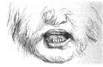C'est un sujet tératologique peu grave qui n'a, comme obstacle à l'accomplissement des fonctions vitales, qu'un retard momentané dans la trituration des aliments, occasionné par la conformation exceptionnelle de la bouche.
