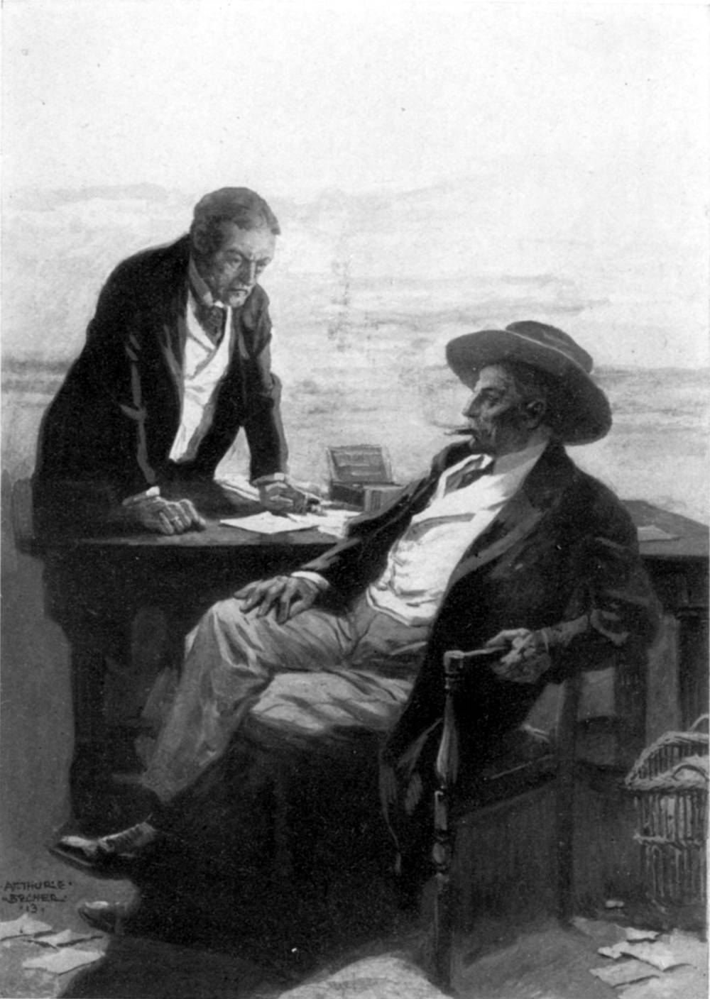 "Perhaps I didn't tell more because there was so little to tell. I had a boyhood like other boys—or, no, possibly it wasn't quite the usual. I was born on the 'Circle-Bar,' when the ranch was—as it still is, I believe—a hard day's drive for a bunch of prime steers distant from the nearest shipping-corral on the railroad. At twelve I could 'ride line,' 'cut out,' and 'rope down' like any other healthy ranch-bred youngster, and since the capital was at that time only in process of getting itself surveyed and boomed into existence I had never seen a town bigger than Painted Hat."