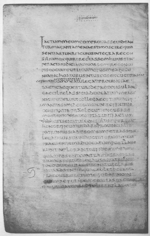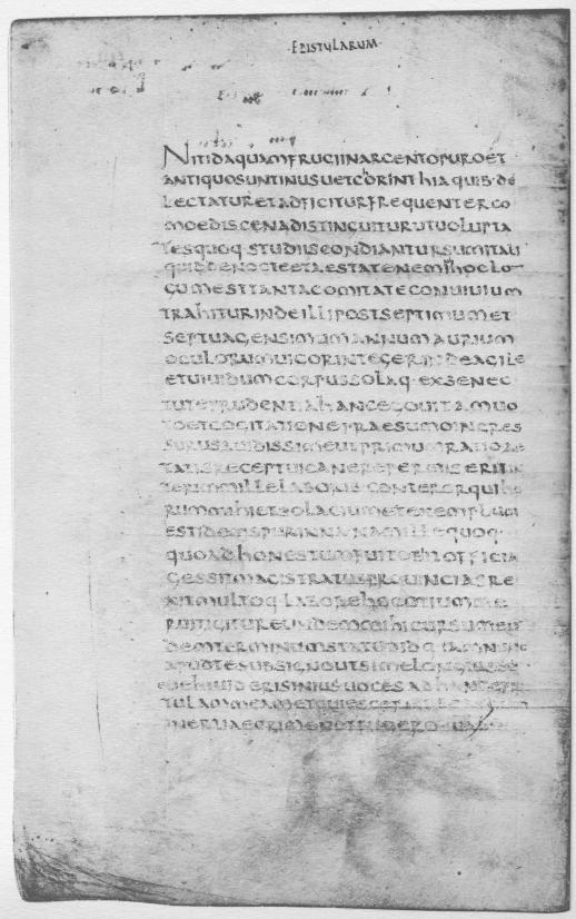 The running title at the top of each page is in small rustic capitals.6 On the verso of each folio stands the word EPISTVLARVM; on the recto of the following folio stands the number of the book, e.g., LIB. II, LIB. III.