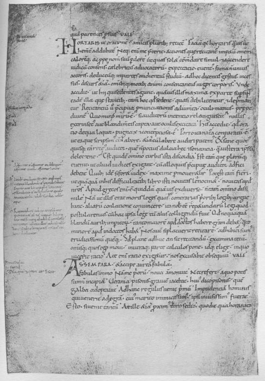 Orthography The spelling found in our six leaves is remarkably correct. It compares favorably with the best spelling encountered in our oldest Latin manuscripts of the fourth and fifth centuries. The diphthong ae is regularly distinguished from e. The interchange of b and u, d and t, o and u, so common in later manuscripts, is rare here: the confusion between b and u occurs once (comprouasse, fo. 52v, l. 1); the omission of h occurs once (pulcritudo, fo. 51v, l. 26); the use of k for c occurs twice (karet, fo. 51r, l. 14, and karitas, fo. 52r, l. 5). The scribe uses the correct forms in adolescet (fo. 51v, l. 14) and adulescenti (fo. 51v, l. 24); he writes auonculi (fo. 53v, l. 15), exsistat (fo. 51v, l. 9), and exsecutos (fo. 53r, l. 8). In the case of composite words he has the assimilated form in some, and in others the unassimilated form, as the following examples go to show:
