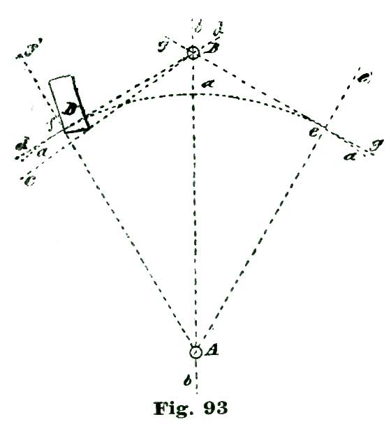 To locate the position of the inner angle of the pallet B, sweep the short arc l by setting the dividers so one point or leg rests at the center e and the other at the point c. Somewhere on this arc l is to be located the inner angle of our pallet. In delineating this angle, Moritz Grossman, in his "Prize Essay on the Detached Lever Escapement," makes an error, in Plate III of large English edition, of more than his entire lock, or about two degrees. We make no apologies for calling attention to this mistake on the part of an authority holding so high a position on such matters as Mr. Grossman, because a mistake is a mistake, no matter who makes it.