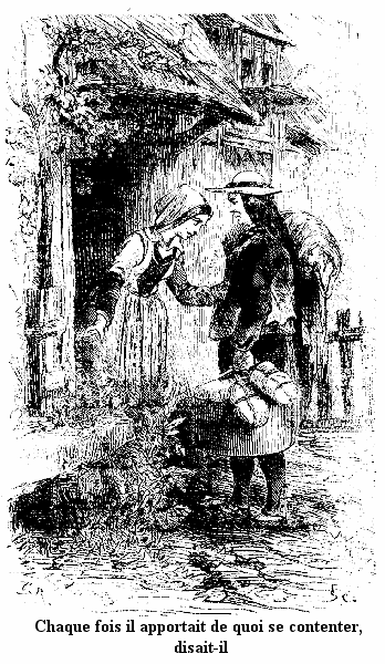 Voyons, Jeannot, sois raisonnable! Je pars comme toi; est-ce que je crie, est-ce que je pleure comme toi! Puisqu'il faut partir, à quoi ça sert de pleurer? Que fais-tu de bon ici? rien du tout. Et à Paris, nous allons retrouver Simon, et il nous aura du pain et du fricot. Et il nous trouvera de l'ouvrage pour que nous ne soyons pas des fainéants, des propres à rien. Et ici, qu'est-ce que nous faisons? Nous mangeons la moitié du pain de maman et de ma tante. Tu vois bien! Sois gentil: dis adieu à ma tante, et viens avec moi. Le voisin Grégoire a donné à maman une bonne galette et un pot de cidre pour nous faire un bon souper, et puis Daniel nous a donné un lapin qu'il venait de tuer.»